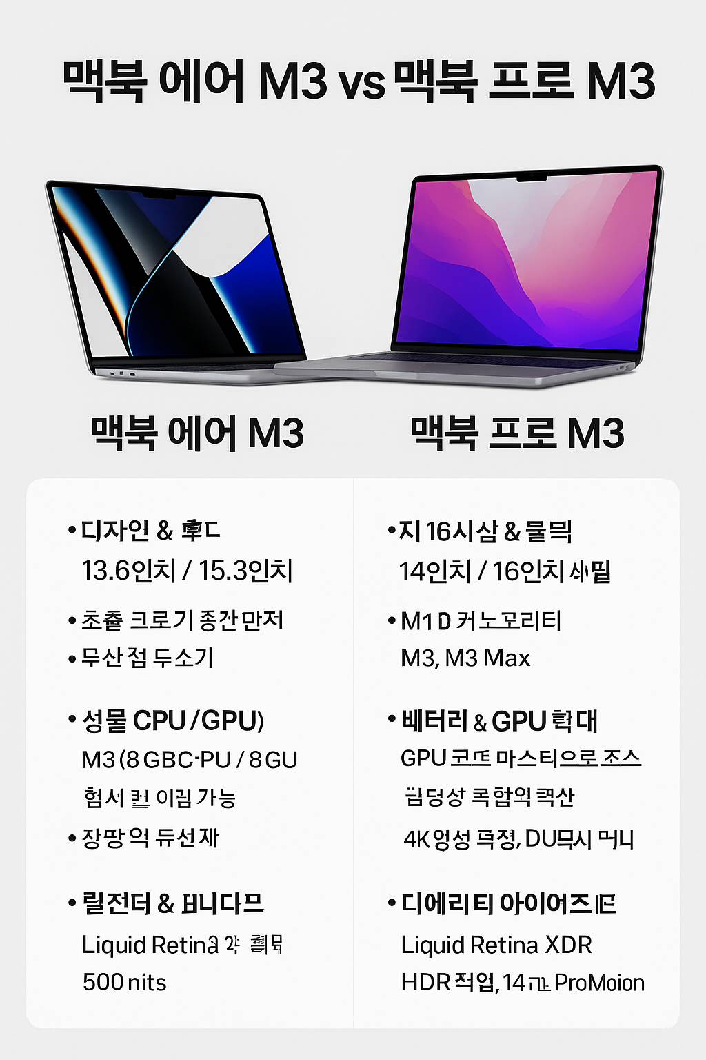 2025년 최신 맥북 에어 M3와 맥북 프로 M3는 많은 분들이 고민하는 선택지인데요.